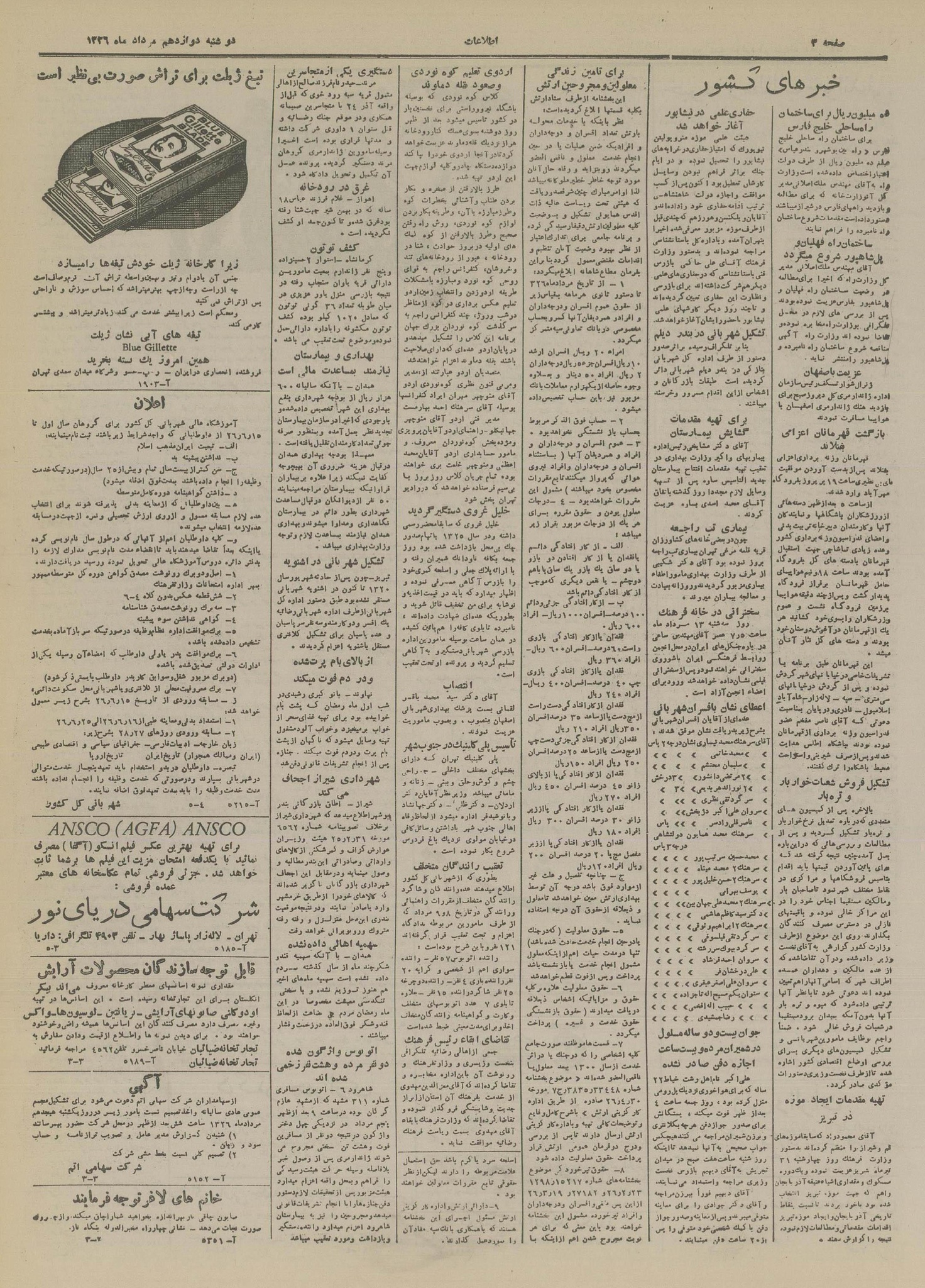 | کنونی | ۱۹ سپتامبر ۲۰۲۵، ساعت ۰۸:۲۰ | ۴٬۴۵۸×۶٬۳۵۲، ۶ صفحه (۵٫۷۲ مگابایت) | Bijan (گفتگو | مشارکتها) | == خلاصه == {{PD-Iran}} رده:روزنامه اطلاعات سال ۱۳۲۶ |