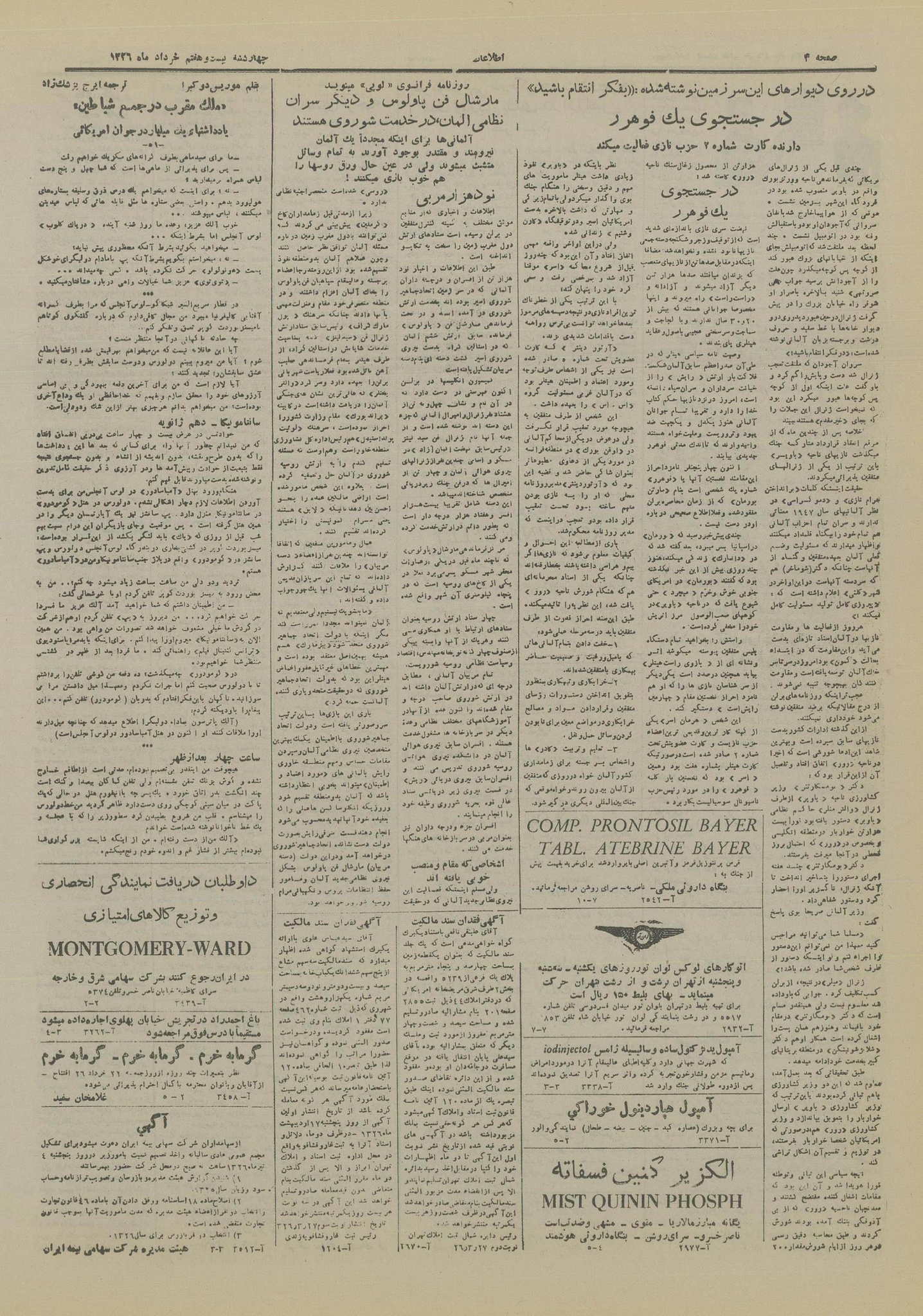 | کنونی | ۱۷ سپتامبر ۲۰۲۵، ساعت ۱۶:۳۴ | ۴٬۴۴۵×۶٬۲۹۵، ۶ صفحه (۵٫۶ مگابایت) | Bijan (گفتگو | مشارکتها) | == خلاصه == {{PD-Iran}} رده:روزنامه اطلاعات سال ۱۳۲۶ |