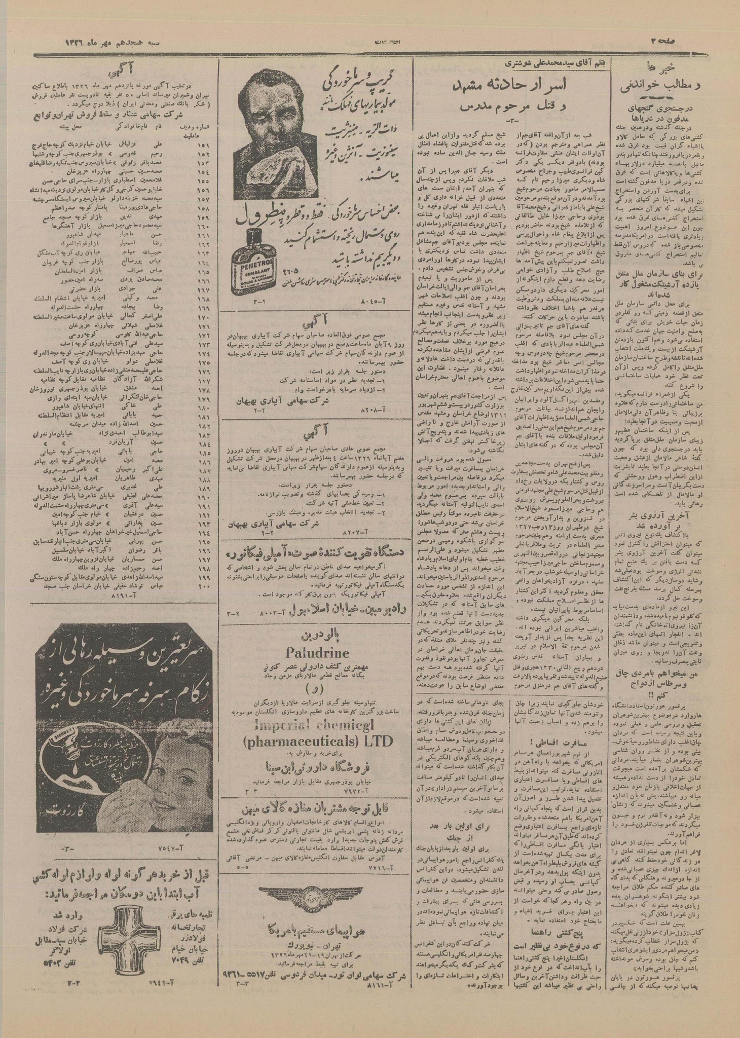 | کنونی | ۱۹ سپتامبر ۲۰۲۵، ساعت ۱۷:۴۳ | ۴٬۵۴۵×۶٬۱۷۹، ۶ صفحه (۵٫۵۳ مگابایت) | Bijan (گفتگو | مشارکتها) | == خلاصه == {{PD-Iran}} رده:روزنامه اطلاعات سال ۱۳۲۶ |