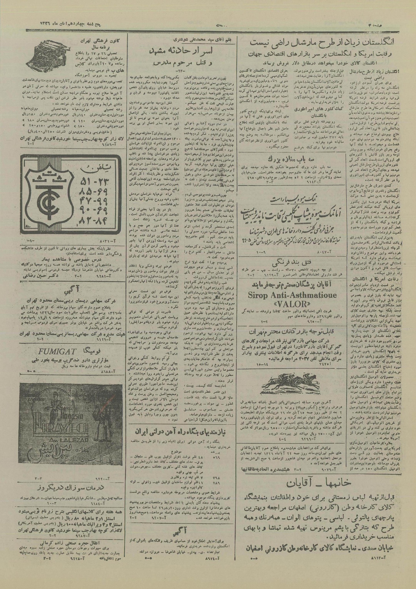 | کنونی | ۲۱ سپتامبر ۲۰۲۵، ساعت ۱۴:۲۴ | ۴٬۴۷۲×۶٬۲۳۳، ۶ صفحه (۵٫۵۵ مگابایت) | Bijan (گفتگو | مشارکتها) | == خلاصه == {{PD-Iran}} رده:روزنامه اطلاعات سال ۱۳۲۶ |