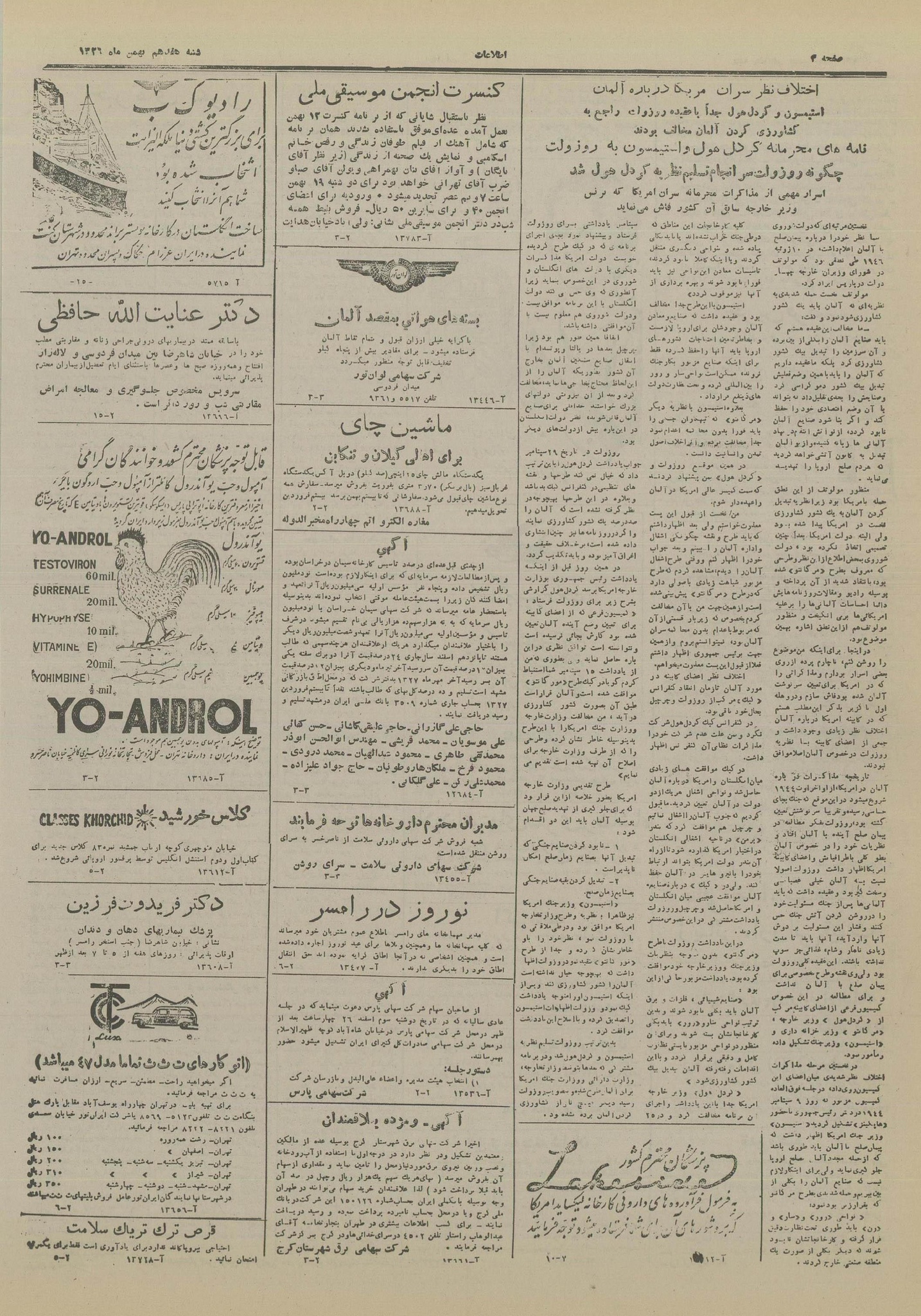 | کنونی | ۲۲ سپتامبر ۲۰۲۵، ساعت ۱۷:۵۰ | ۴٬۳۸۳×۶٬۳۱۴، ۸ صفحه (۷٫۴۸ مگابایت) | Bijan (گفتگو | مشارکتها) | == خلاصه == {{PD-Iran}} رده:روزنامه اطلاعات سال ۱۳۲۶ |