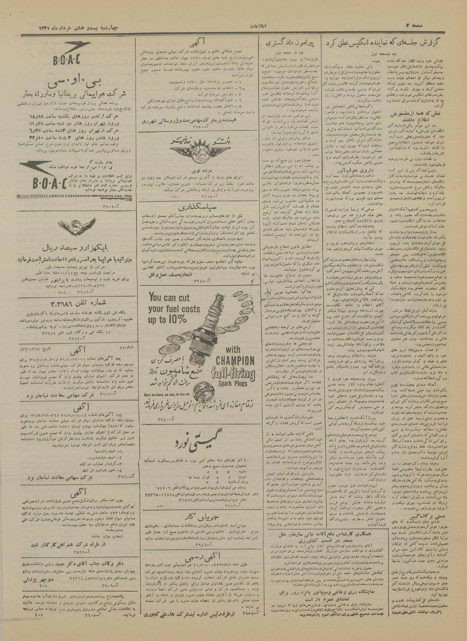 | کنونی | ۲۵ سپتامبر ۲۰۲۲، ساعت ۱۰:۵۵ | ۴٬۵۹۷×۶٬۲۵۰، ۸ صفحه (۷٫۱۴ مگابایت) | Bijan (گفتگو | مشارکتها) | == خلاصه == {{PD-Iran}} رده:روزنامه اطلاعات سال ۱۳۳۱ |