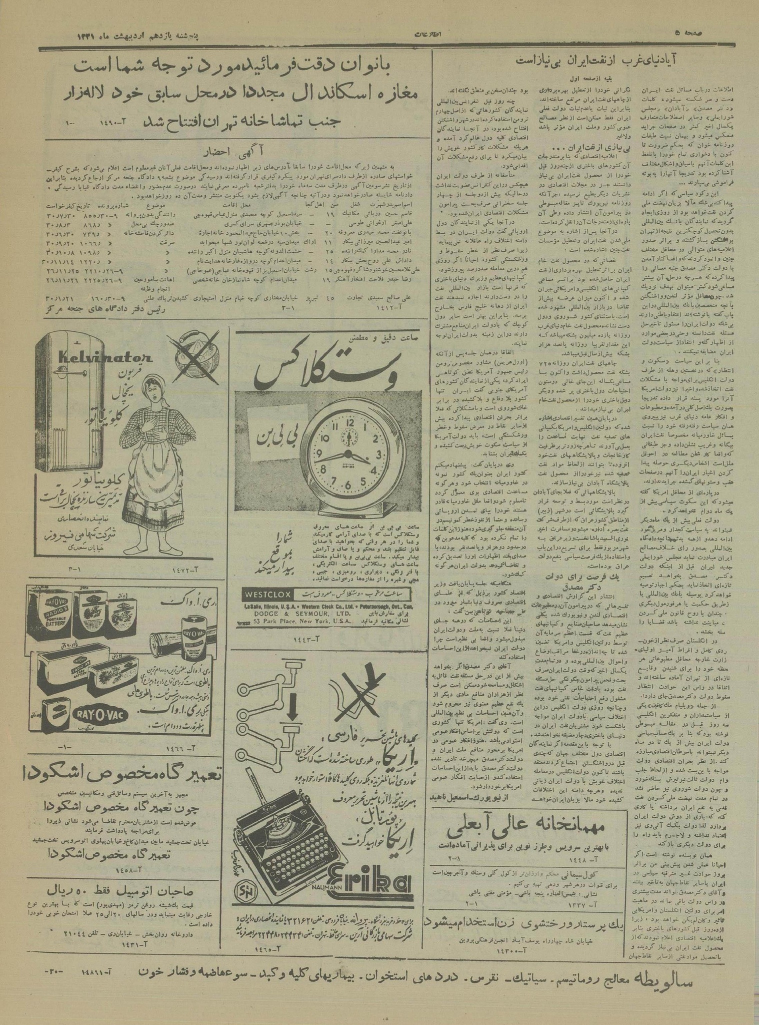 | کنونی | ۲۵ سپتامبر ۲۰۲۲، ساعت ۰۵:۳۵ | ۴٬۵۷۷×۶٬۱۸۵، ۱۰ صفحه (۸٫۶۵ مگابایت) | Bijan (گفتگو | مشارکتها) | == خلاصه == {{PD-Iran}} رده:روزنامه اطلاعات سال ۱۳۳۱ |
