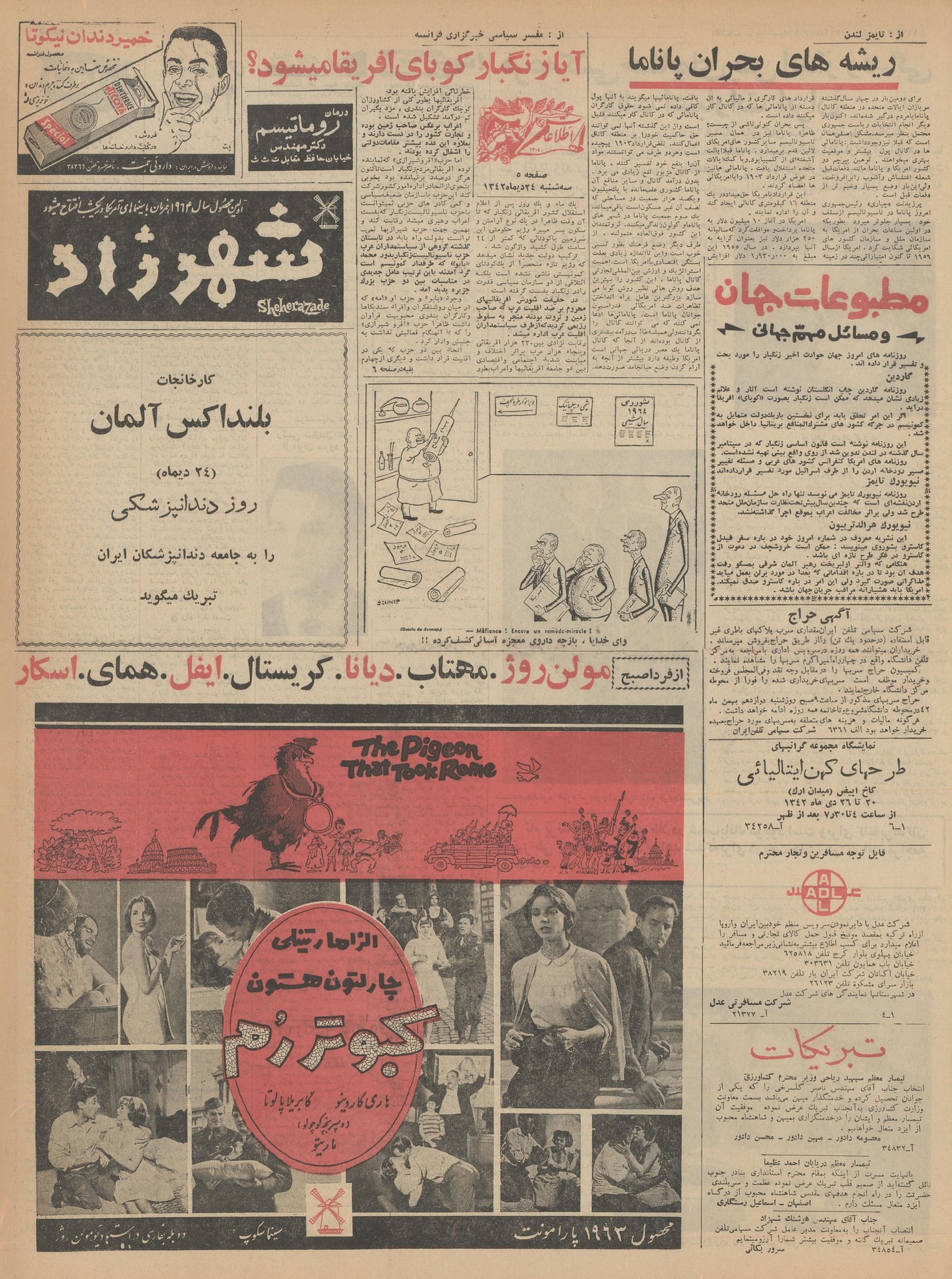 | کنونی | ۲۴ ژانویهٔ ۲۰۱۵، ساعت ۱۷:۲۳ | ۵٬۹۹۳×۸٬۰۳۳، ۱۶ صفحه (۳۶٫۴۲ مگابایت) | Bijan (گفتگو | مشارکتها) | {{PD-Iran}} رده:روزنامه اطلاعات سال ۱۳۴۲ |
