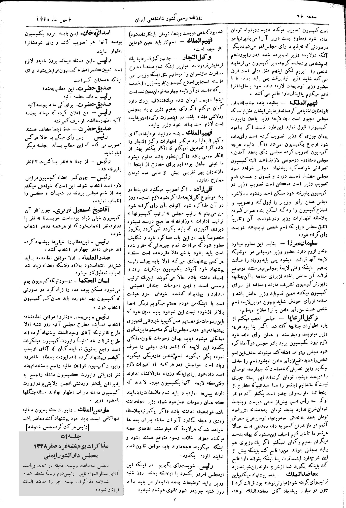 | کنونی | ۱۴ آوریل ۲۰۱۳، ساعت ۱۰:۲۹ | ۶٬۰۰۴×۸٬۹۴۷، ۵ صفحه (۱۰٫۷۳ مگابایت) | Bijan (گفتگو | مشارکتها) | {{PD-Iran}} رده:مجلس شورای ملی مذاکرات دوره قانونگذاری دوم - ۲۴ آبان ۱۲۸۸ تا ۲۳ دی ۱۲۹۰ |