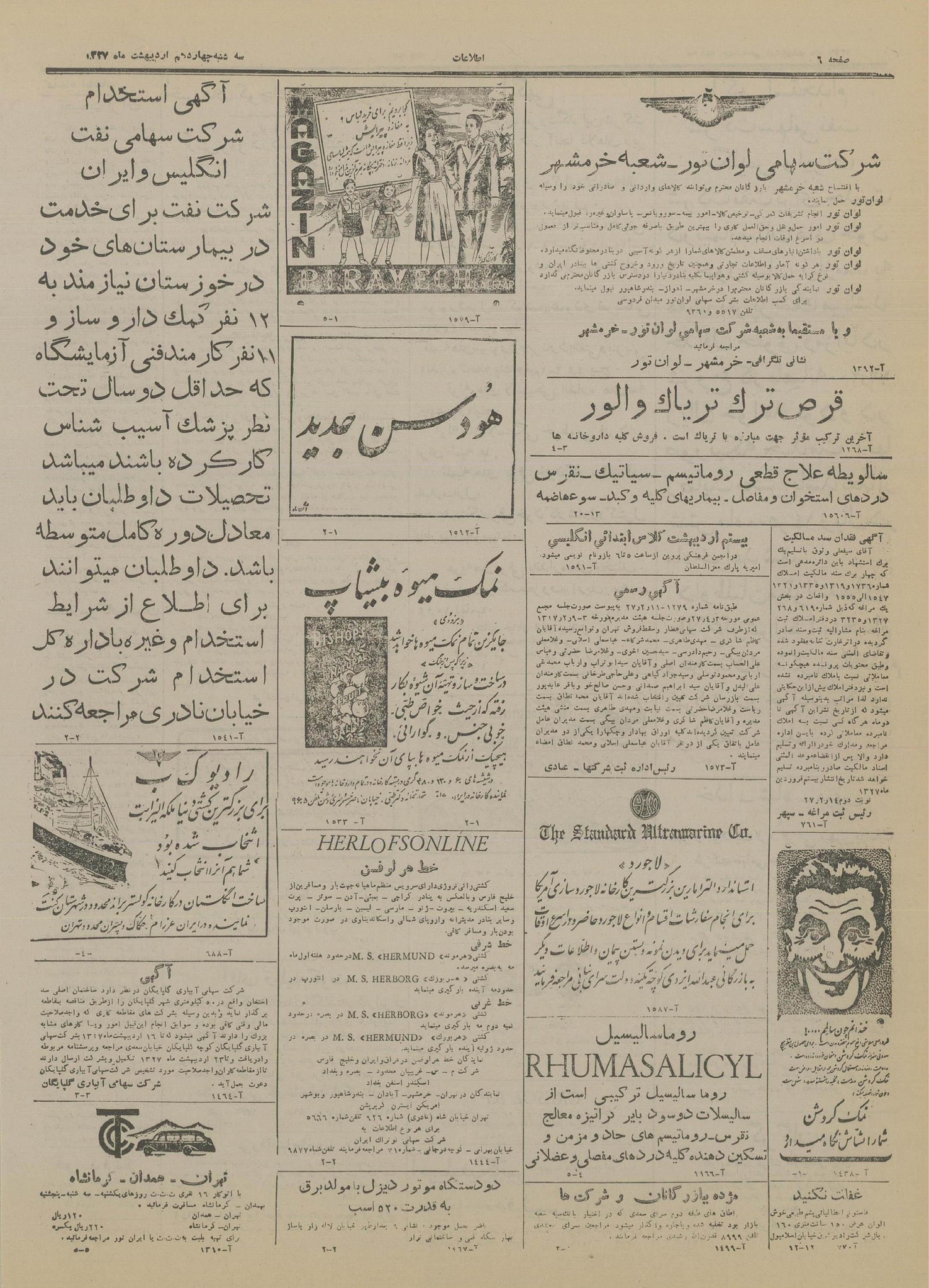 | کنونی | ۲۳ سپتامبر ۲۰۲۵، ساعت ۱۸:۰۵ | ۴٬۴۱۰×۶٬۲۱۶، ۸ صفحه (۶٫۷ مگابایت) | Bijan (گفتگو | مشارکتها) | == خلاصه == {{PD-Iran}} رده:روزنامه اطلاعات سال ۱۳۲۷ |