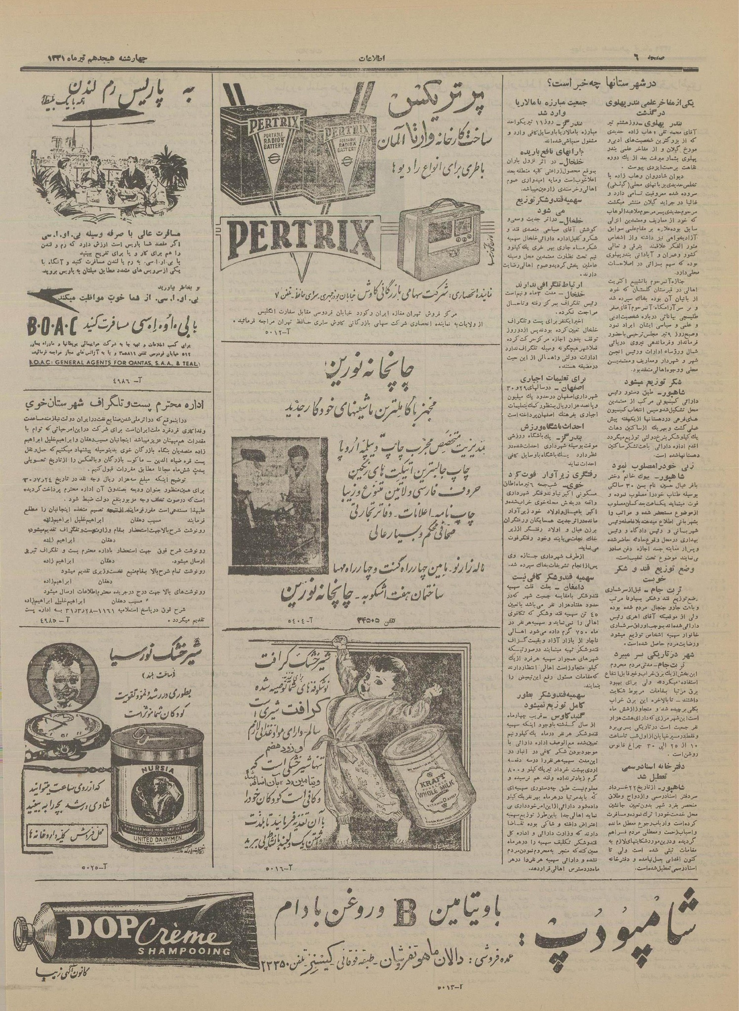 | کنونی | ۲۷ سپتامبر ۲۰۲۲، ساعت ۰۵:۱۶ | ۴٬۴۸۵×۶٬۳۲۲، ۸ صفحه (۷٫۲۱ مگابایت) | Bijan (گفتگو | مشارکتها) | == خلاصه == {{PD-Iran}} رده:روزنامه اطلاعات سال ۱۳۳۱ |