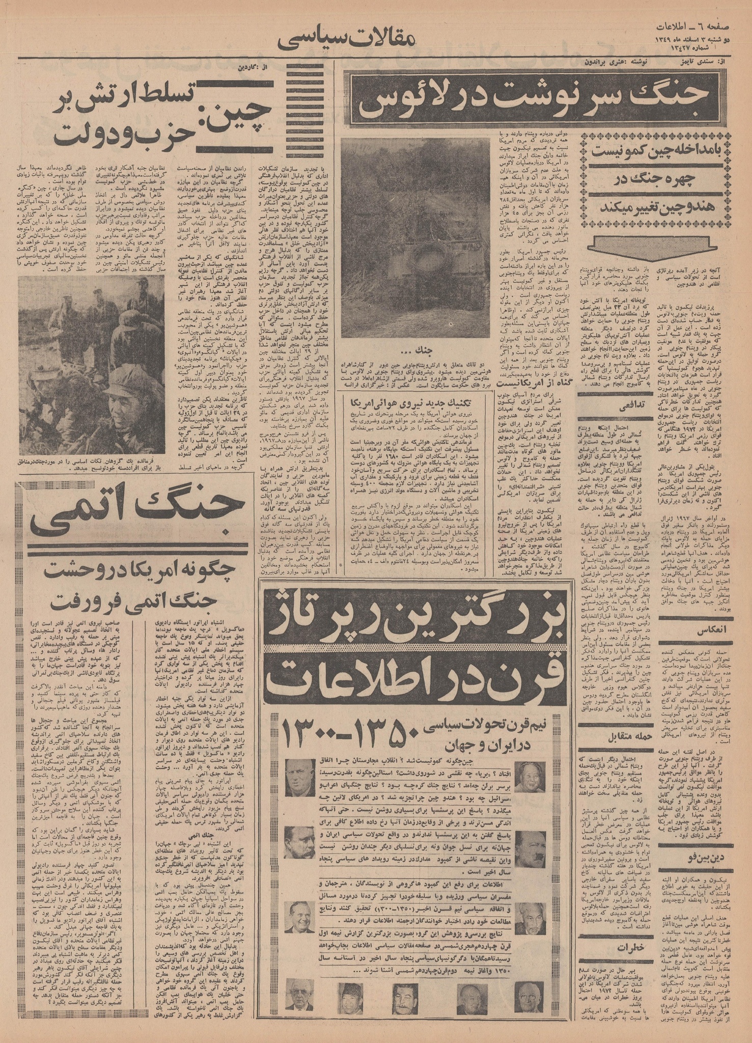 | ۱ نوامبر ۲۰۱۴، ساعت ۱۷:۰۱ | ۱٬۴۰۰×۲٬۰۰۰، ۱۳ صفحه (۶۹٫۸۵ مگابایت) | Bijan (گفتگو | مشارکتها) | {{PD-Iran}} رده:روزنامه اطلاعات سال ۱۳۴۹ |