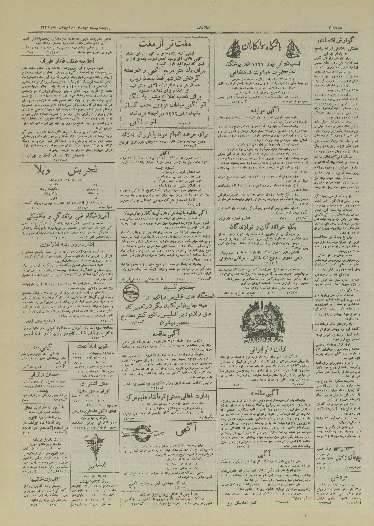 | کنونی | ۱۷ سپتامبر ۲۰۲۵، ساعت ۰۹:۲۹ | ۴٬۵۴۷×۶٬۲۲۷، ۸ صفحه (۷٫۶۲ مگابایت) | Bijan (گفتگو | مشارکتها) | == خلاصه == {{PD-Iran}} رده:روزنامه اطلاعات سال ۱۳۲۶ |