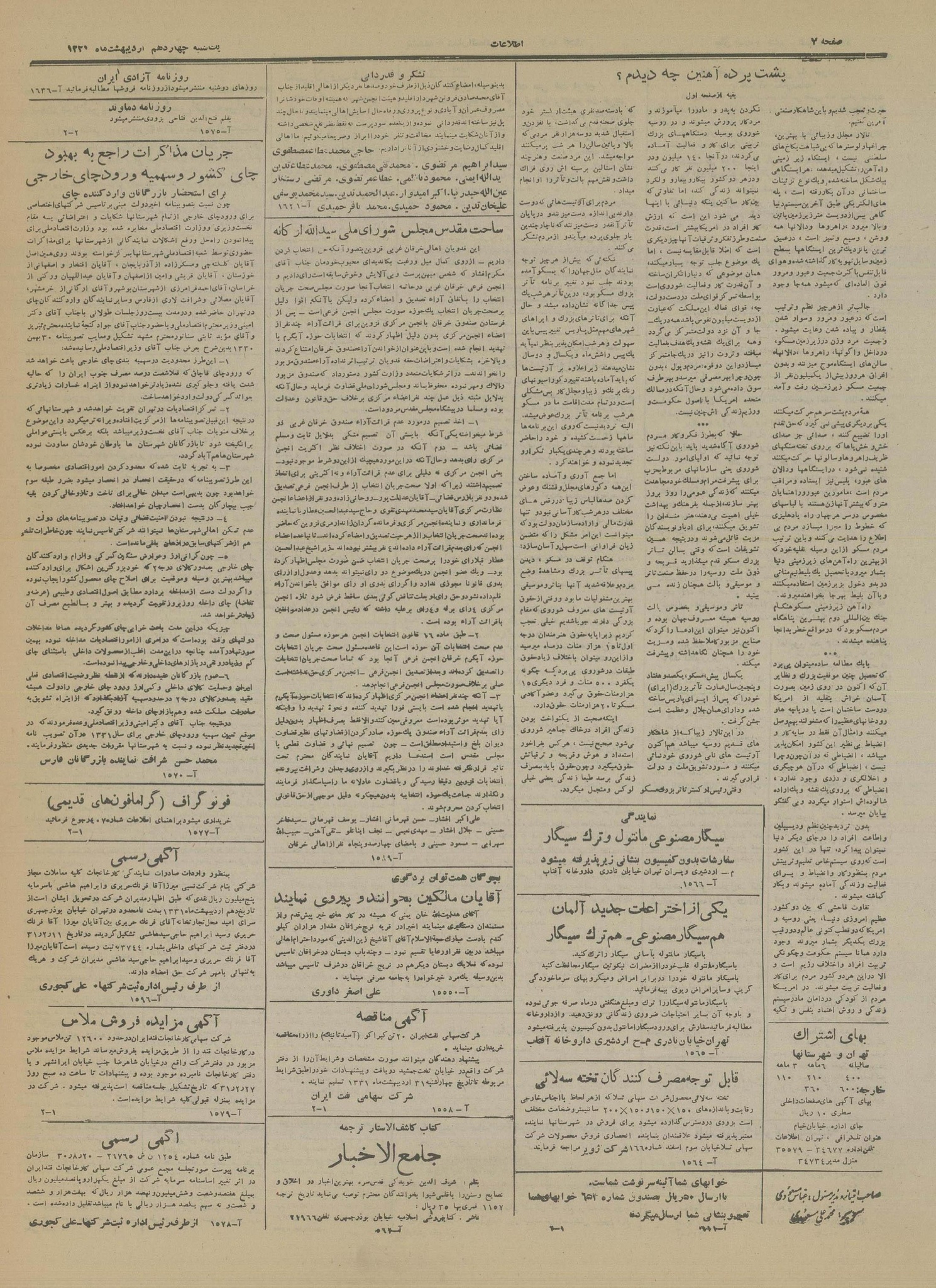 | کنونی | ۲۵ سپتامبر ۲۰۲۲، ساعت ۰۵:۳۷ | ۴٬۵۲۰×۶٬۲۰۴، ۸ صفحه (۷٫۴۴ مگابایت) | Bijan (گفتگو | مشارکتها) | == خلاصه == {{PD-Iran}} رده:روزنامه اطلاعات سال ۱۳۳۱ |