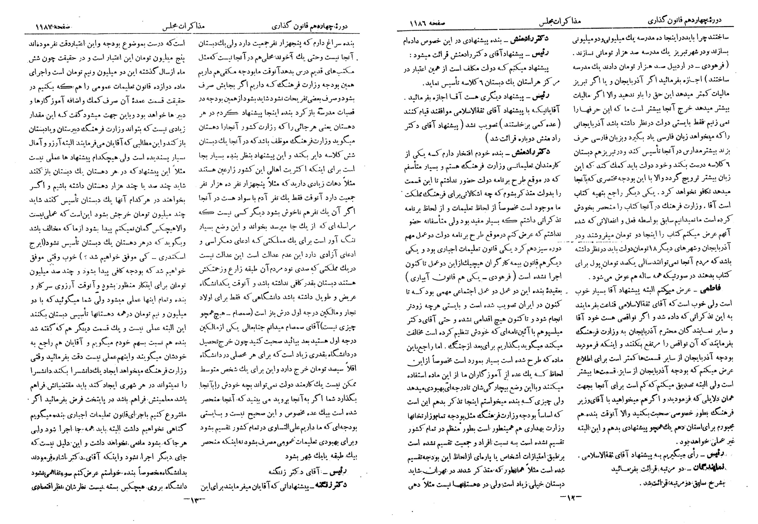 | کنونی | ۶ آوریل ۲۰۱۲، ساعت ۰۴:۱۵ | ۵٬۶۰۰×۷٬۸۹۳، ۱۳ صفحه (۲۳٫۴ مگابایت) | Farhad (گفتگو | مشارکتها) | == Licensing == {{PD-Iran}} رده:مجلس شورای ملی مذاکرات دوره قانونگذاری چهاردهم - ۶ اسفند ۱۳۲۲ تا ۲۱ اسفند ۱۳۲۴ |