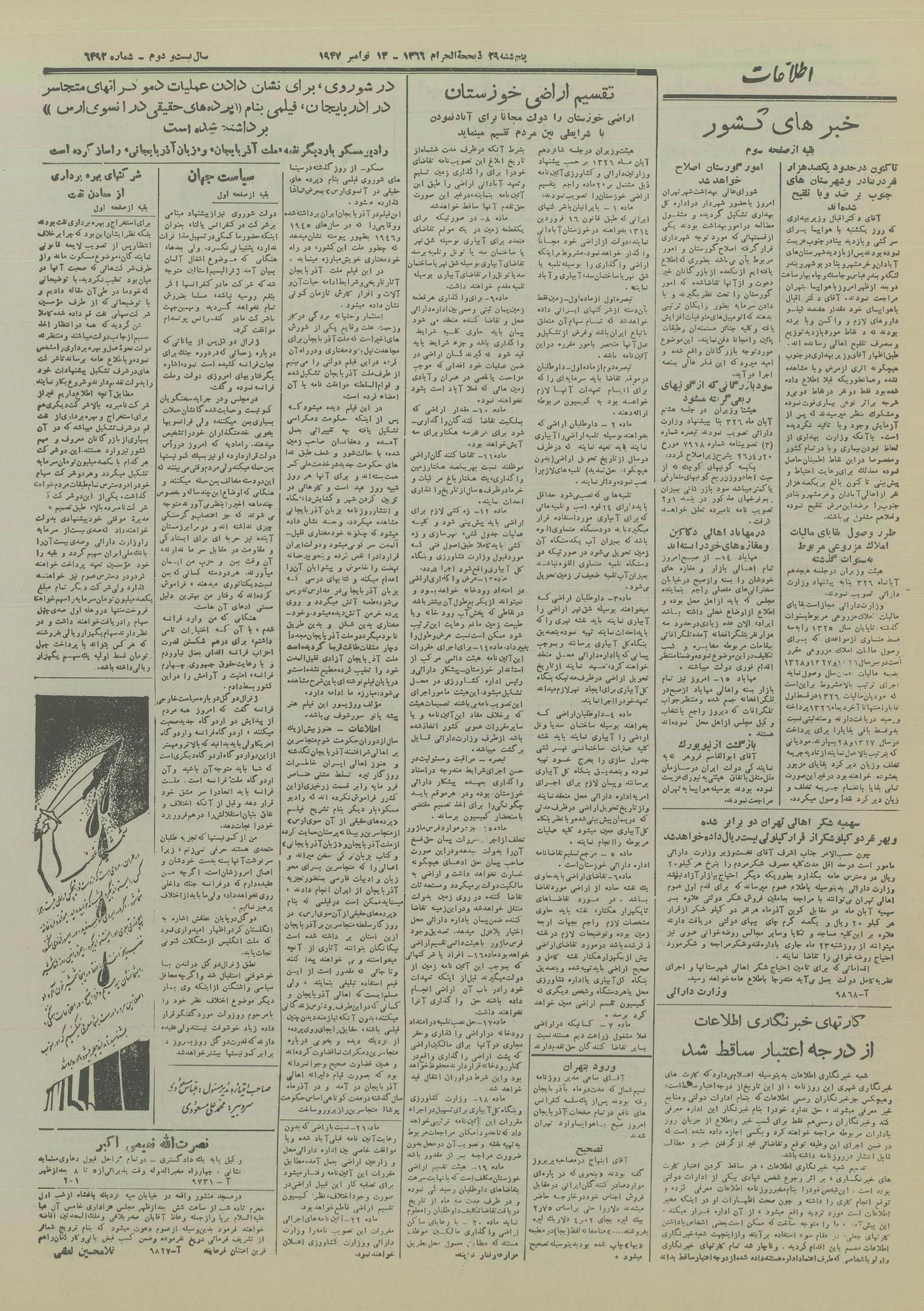 | کنونی | ۲۱ سپتامبر ۲۰۲۵، ساعت ۱۴:۲۹ | ۴٬۵۲۷×۶٬۳۶۰، ۸ صفحه (۲۰٫۹ مگابایت) | Bijan (گفتگو | مشارکتها) | == خلاصه == {{PD-Iran}} رده:روزنامه اطلاعات سال ۱۳۲۶ |