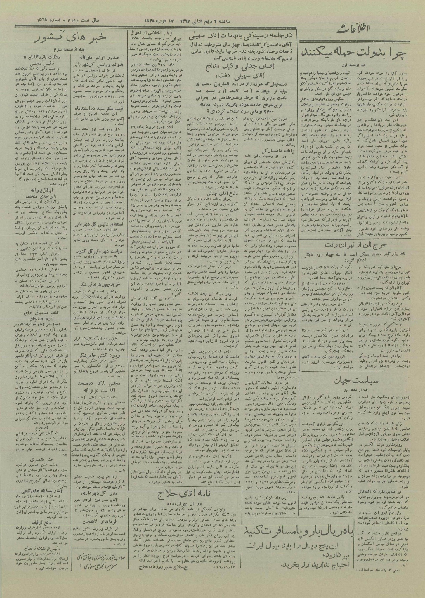 | کنونی | ۲۲ سپتامبر ۲۰۲۵، ساعت ۱۷:۵۷ | ۴٬۵۶۲×۶٬۳۴۱، ۸ صفحه (۷٫۲۱ مگابایت) | Bijan (گفتگو | مشارکتها) | == خلاصه == {{PD-Iran}} رده:روزنامه اطلاعات سال ۱۳۲۶ |