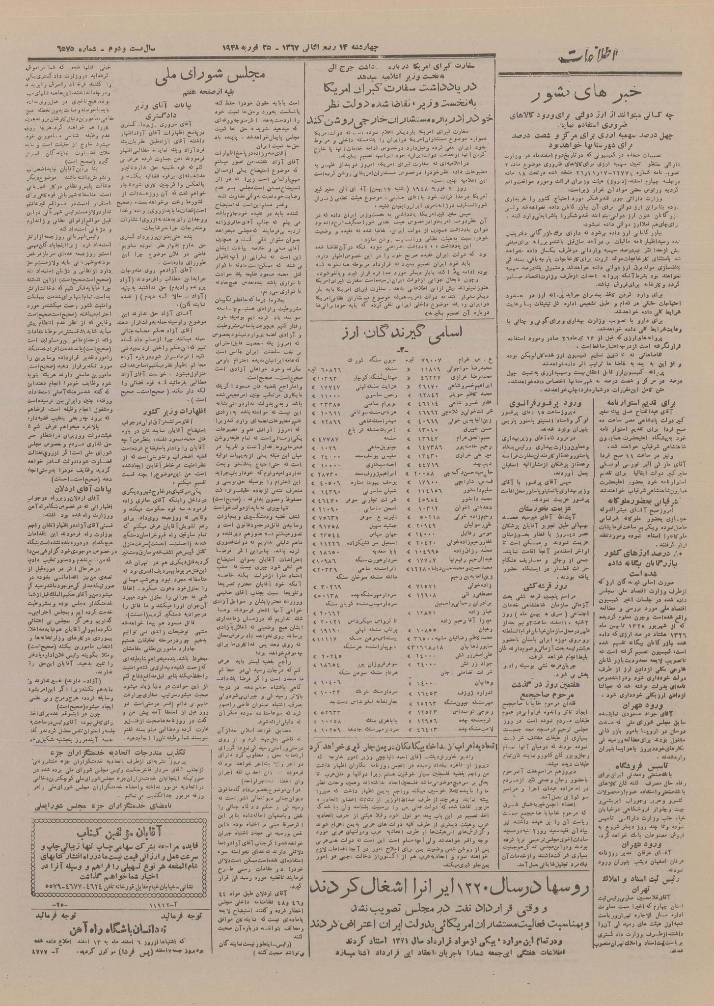 | کنونی | ۲۲ سپتامبر ۲۰۲۵، ساعت ۱۸:۲۰ | ۴٬۴۳۷×۶٬۲۷۰، ۸ صفحه (۷٫۰۲ مگابایت) | Bijan (گفتگو | مشارکتها) | == خلاصه == {{PD-Iran}} رده:روزنامه اطلاعات سال ۱۳۲۶ |