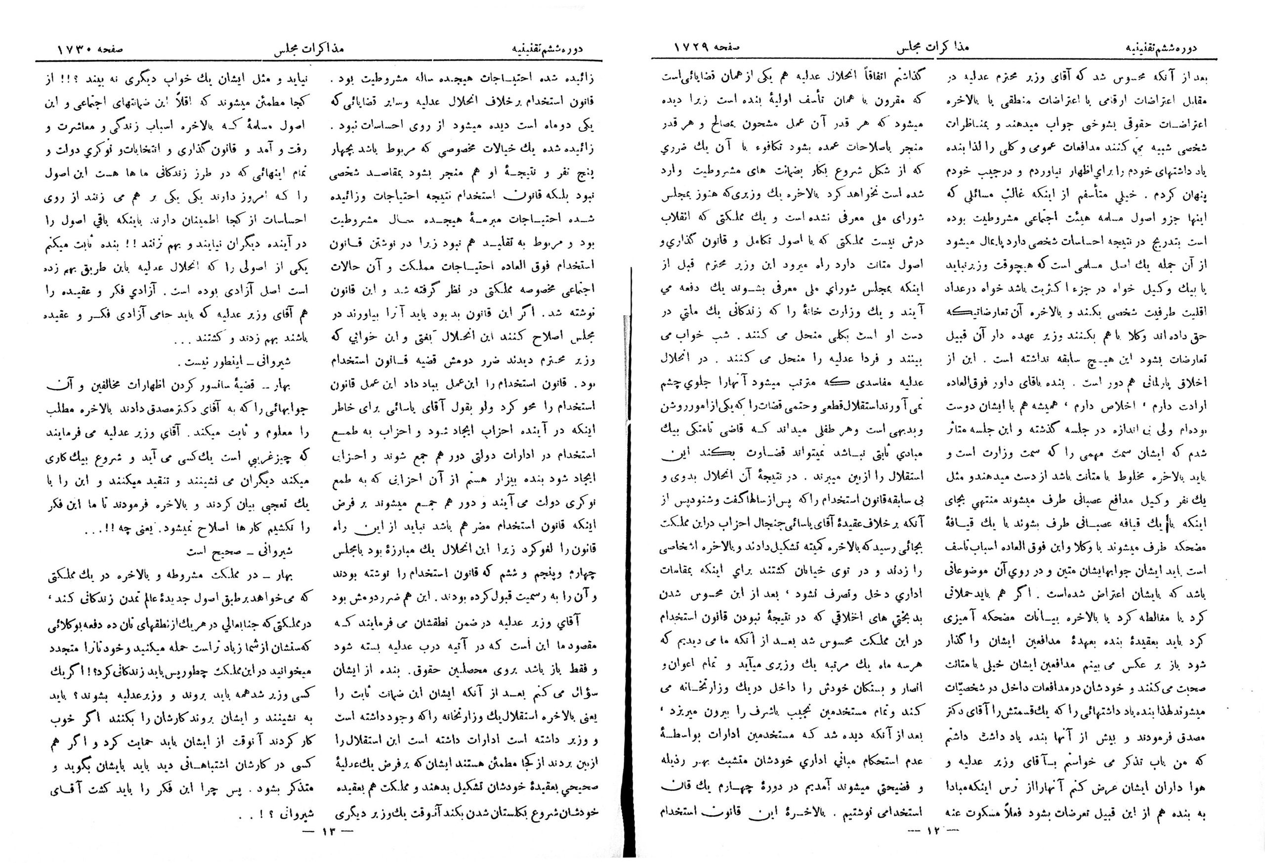 | کنونی | ۱۱ ژوئیهٔ ۲۰۱۳، ساعت ۱۲:۵۱ | ۴٬۱۸۹×۵٬۵۹۵، ۲۲ صفحه (۲۱٫۰۳ مگابایت) | Bijan (گفتگو | مشارکتها) | {{PD-Iran}} رده:مجلس شورای ملی مذاکرات دوره قانونگذاری ششم - ۱۹ تیر ۱۳۰۵ تا ۲۲ امرداد ۱۳۰۷ |