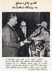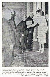 - ↑ مصاحبه علیاحضرت شهبانو فرح پهلوی به هنگام بازدید از نمایشگاه پیشرفتهای پنجاه سال شاهنشاهی پهلوی ۱۶ شهریور ۲۵۳۵ شاهنشاهی