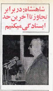 - ↑ مصاحبه اعلیحضرت همایون محمدرضا شاه پهلوی شاهنشاه آریامهر با روزنامهنگاران آمریکایی در کاخ شاهنشاهی نوشهر ۱۸ امرداد ماه ۲۵۳۵ شاهنشاهی