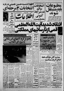 روزنامه اطلاعات روز دوشنبه ۲۰ اسفند ماه ۱۳۵۸