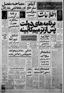 روزنامه اطلاعات روز دوشنبه ۹ مهر ماه ۱۳۵۸
