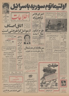 روزنامه اطلاعات روز سهشنبه ۸ آبان ماه ۱۳۵۲