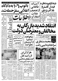 روزنامه اطلاعات روز شنبه ۱۰ شهریور ماه ۱۳۵۸