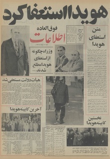 روزنامه اطلاعات روز شنبه ۱۵ امرداد ماه ۲۵۳۶ شاهنشاهی هویدا کناره گرفت