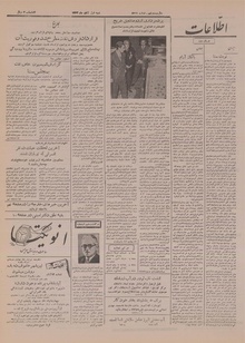 روزنامه اطلاعات روز شنبه ۱ آبان ماه ۱۳۳۳