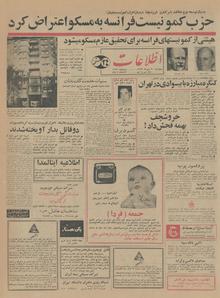 روزنامه اطلاعات روز پنجشنبه ۳۰ مهر ماه ۱۳۴۳