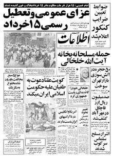 روزنامه اطلاعات روز یکشنبه ۱۳ خرداد ماه ۱۳۵۸