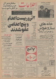 روزنامه اطلاعات روز یکشنبه ۱۷ اسفند ماه ۱۳۵۴