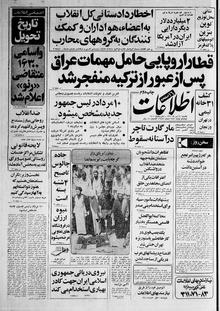 روزنامه اطلاعات روز یکشنبه ۲۱ تیر ماه ۱۳۶۰