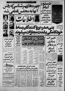 روزنامه اطلاعات روز یکشنبه ۲۶ اسفند ماه ۱۳۵۸