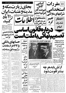 روزنامه اطلاعات روز یکشنبه ۲۷ خرداد ماه ۱۳۵۸