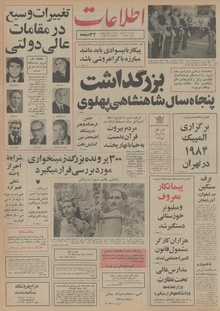 روزنامه اطلاعات روز یکشنبه ۴ آبان ماه ۱۳۵۴