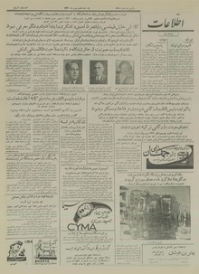 روزنامه اطلاعات روز یکشنبه ۸ بهمن ماه ۱۳۳۴