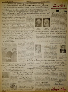 روزنامه اطلاعات روز یکشنبه ۸ مهر ماه ۱۳۳۵