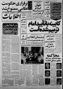 روزنامه اطلاعات روز یکشنبه ۸ مهر ماه ۱۳۵۸