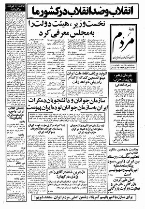 روزنامه مردم روز دوشنبه ۱۰ شهریور ماه ۱۳۵۹