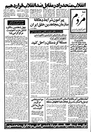 روزنامه مردم روز دوشنبه ۱۰ فروردین ماه ۱۳۶۰