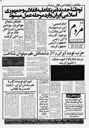 روزنامه مردم روز دوشنبه ۱۷ آذر ماه ۱۳۵۹