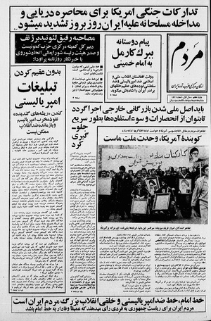روزنامه مردم روز دوشنبه ۲۴ دی ماه ۱۳۵۸