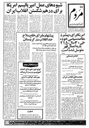 روزنامه مردم روز دوشنبه ۲۴ شهریور ماه ۱۳۵۹