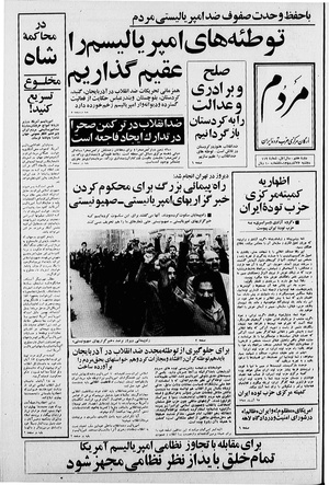 روزنامه مردم روز دوشنبه ۲۶ آذر ماه ۱۳۵۸