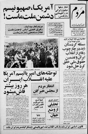 روزنامه مردم روز دوشنبه ۲۹ امرداد ماه ۱۳۵۸