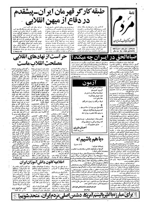 روزنامه مردم روز دوشنبه ۷ مهر ماه ۱۳۵۹
