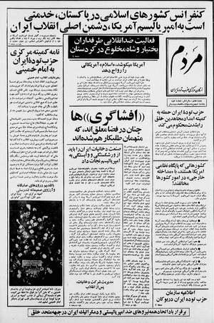 روزنامه مردم روز دوشنبه ۸ بهمن ماه ۱۳۵۸