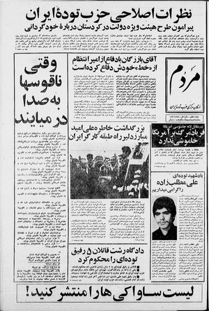 روزنامه مردم روز سهشنبه ۴ دی ماه ۱۳۵۸