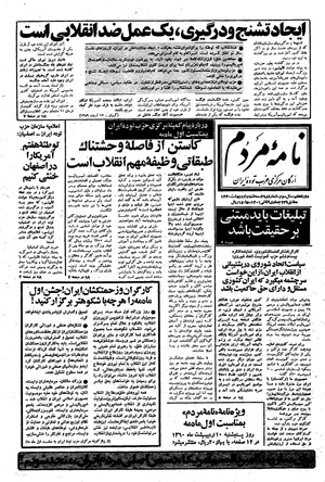 روزنامه مردم روز سه شنبه ۸ اردیبهشت ماه ۱۳۶۰
