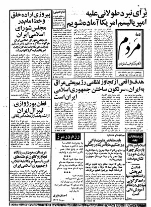 روزنامه مردم روز شنبه ۱۲ مهر ماه ۱۳۵۹