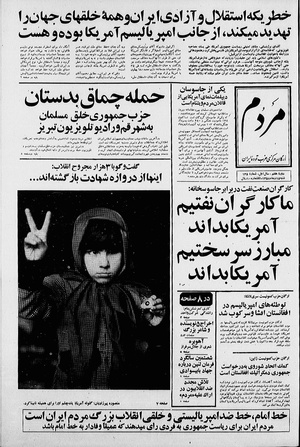 روزنامه مردم روز شنبه ۱۵ دی ماه ۱۳۵۸